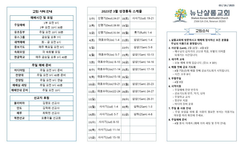April 02, 2023 . NSC 2023년 3월 26일 주보