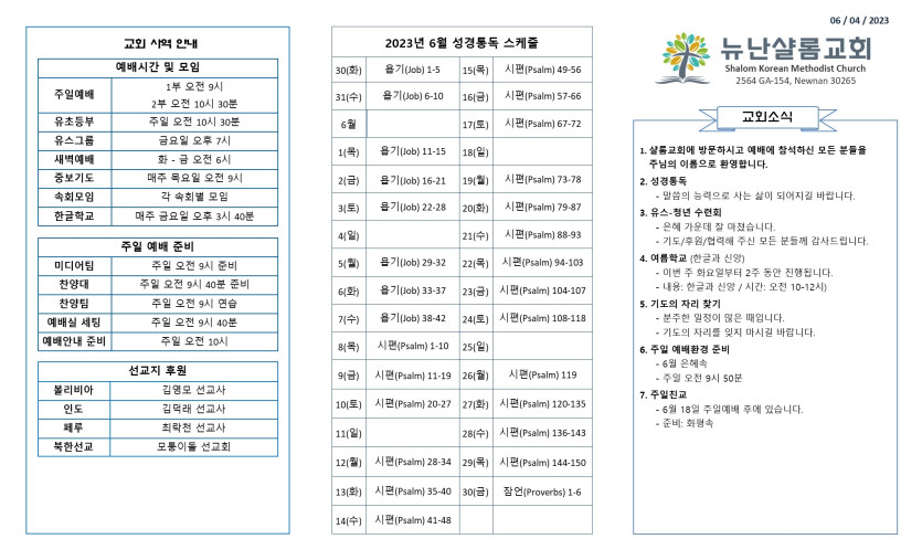 June 04, 2023 . NSC 2023년 6월 4일 주일예배 주보