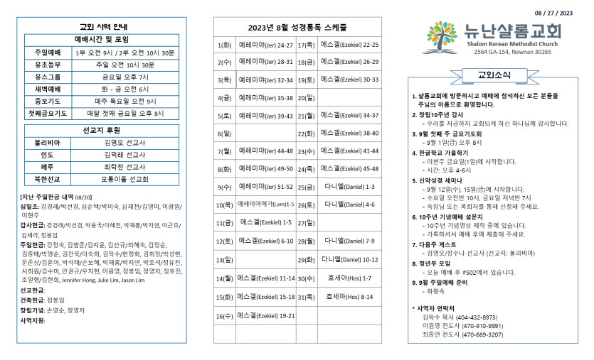 September 09, 2023 . NSC 2023년 8월 27일 주보