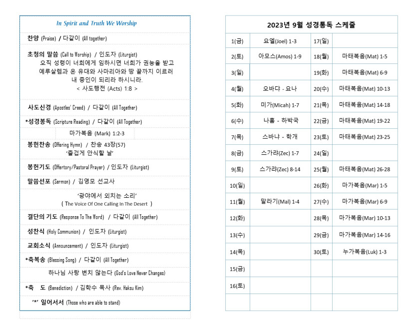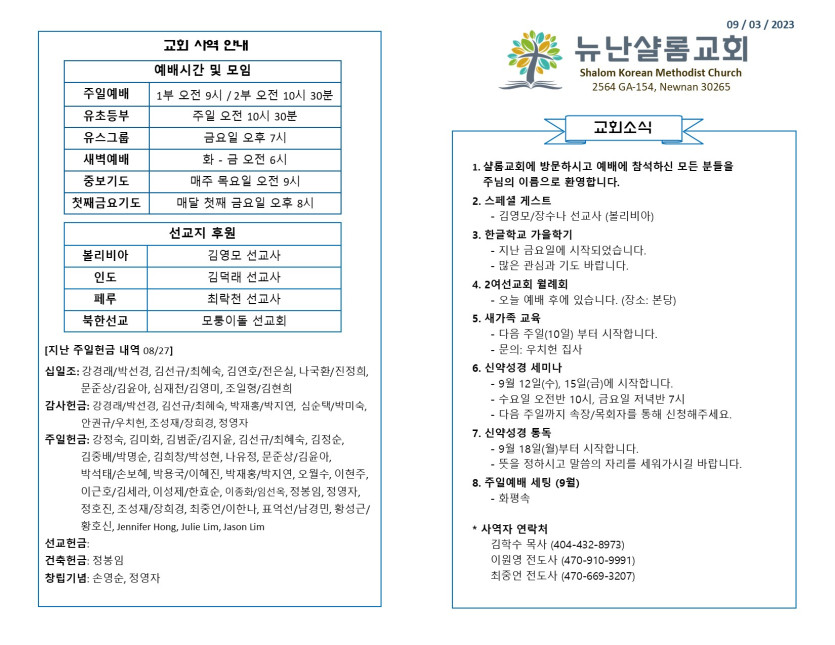 September 09, 2023 . NSC 2023년 9월 3일 주보