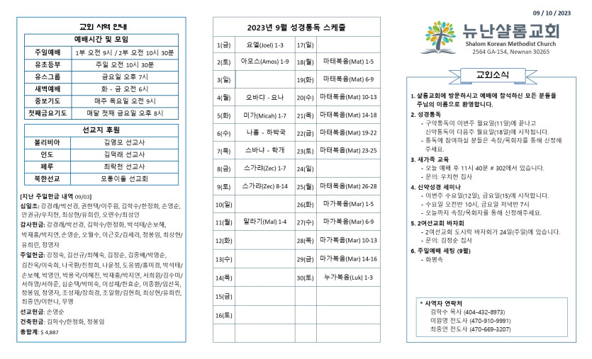 September 10, 2023 . NSC 2023년 9월 10일 주보