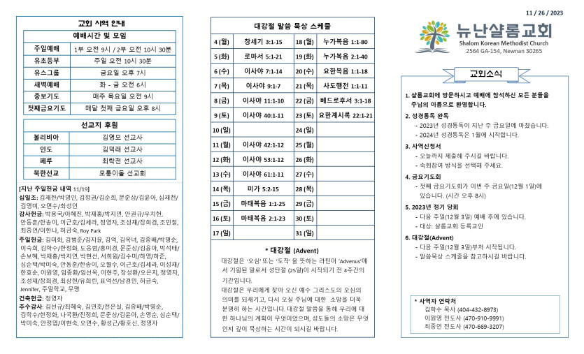 December 03, 2023 . NSC 2023년 11월 26일 주보