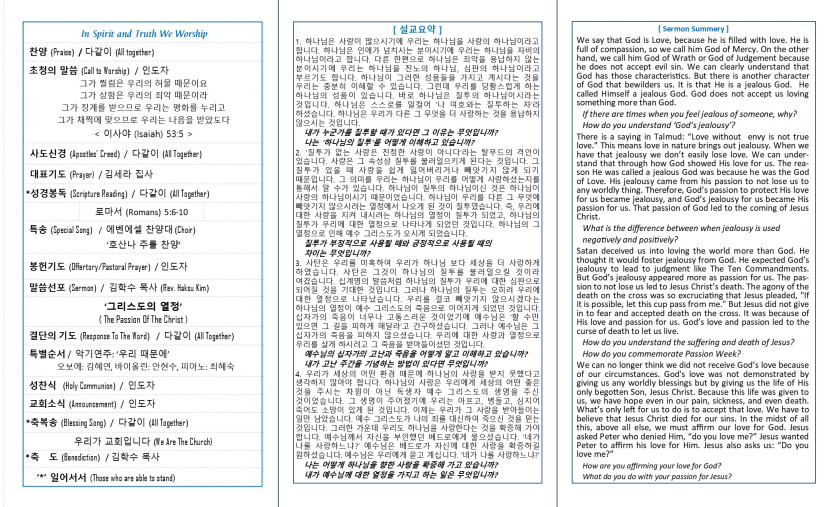 주일예배 주보