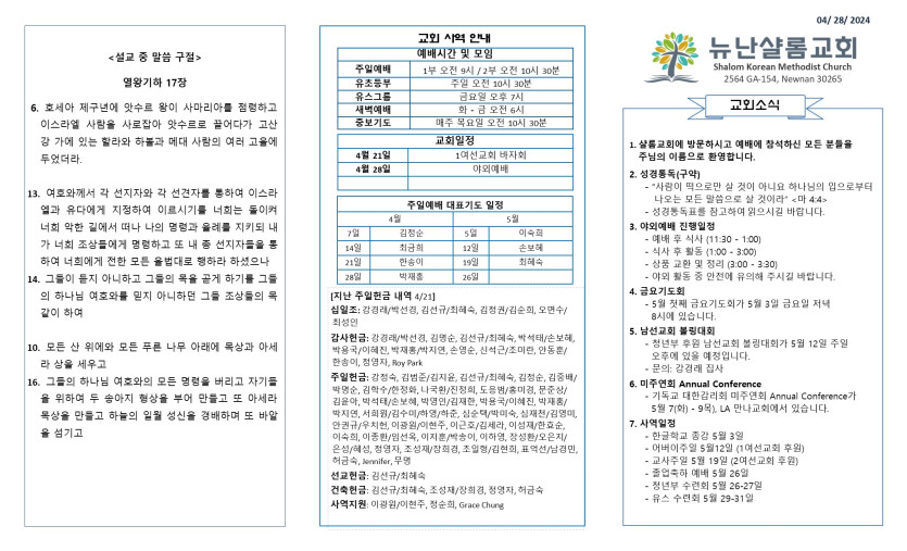 June 02, 2024 . NSC 2024년 4월 28일 주보