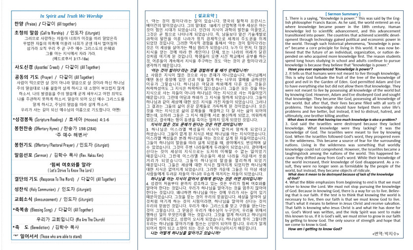주일예배 주보