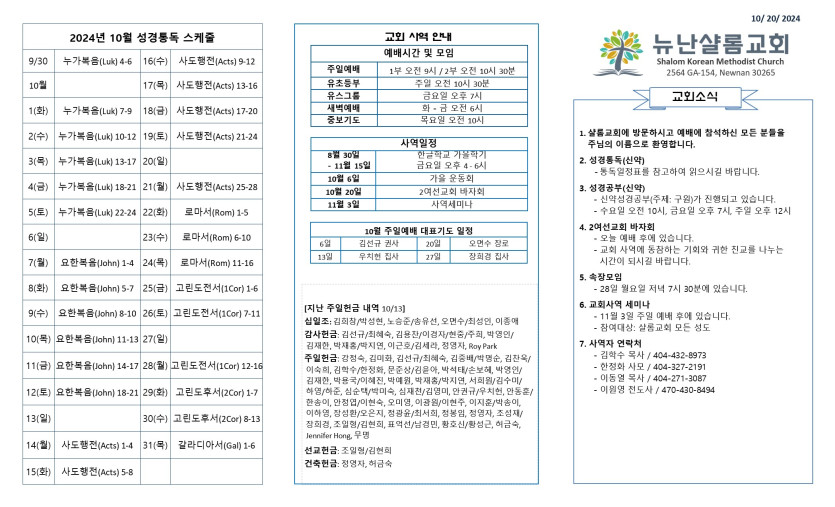 October 27, 2024 . NSC 2024년 10월 20일 주보