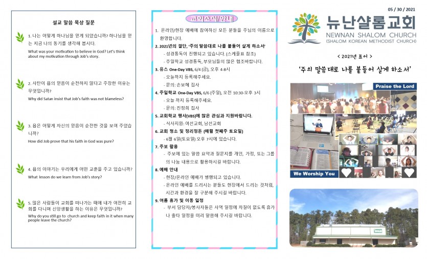 June 01, 2021 . NSC 2021년 5월 30일 주보