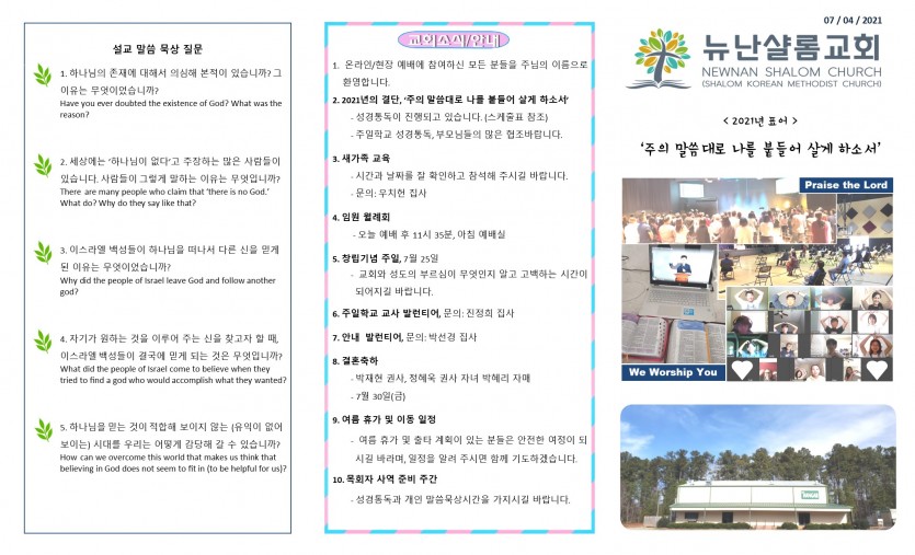 July 06, 2021 . NSC 2021년 7월 4일 주보