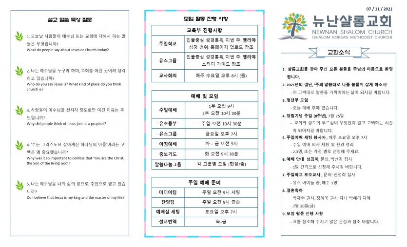 July 12, 2021 . NSC 2021년 7월 11일 주보
