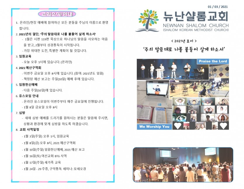 January 13, 2021 . NSC 2021년 1월 3일 주보