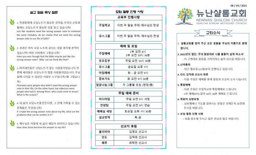 August 29, 2021 . NSC 2021년 8월 29일 주보