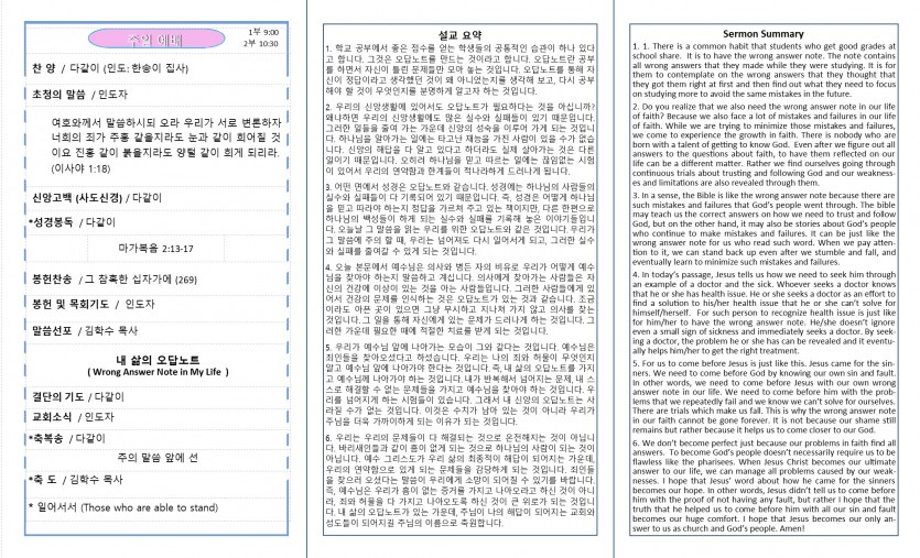 주일예배 주보