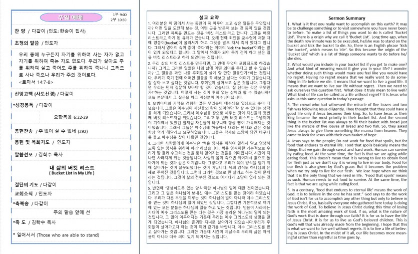 주일 예배 Worship Service