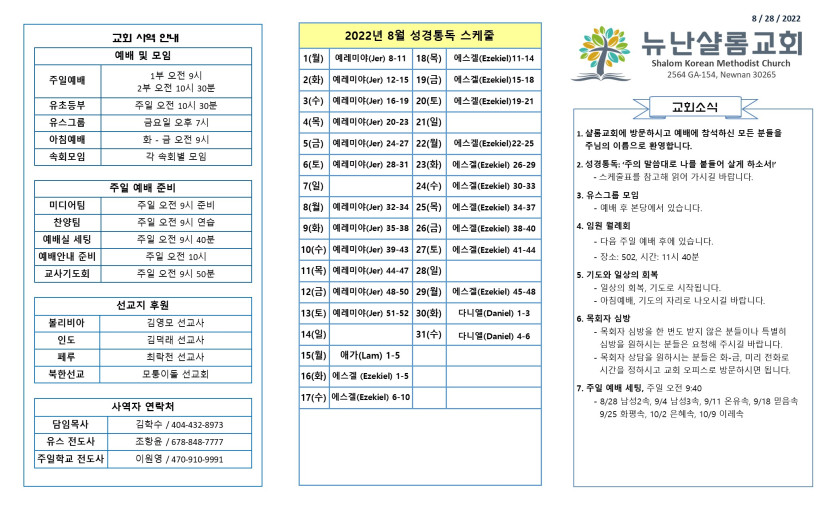 August 30, 2022 . NSC 2022년 8월 28일 주보