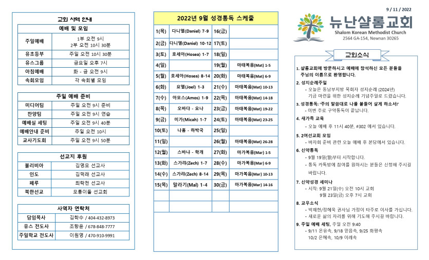 September 16, 2022 . NSC 2022년 9월 11일 주보