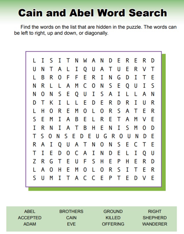 25 아담의 아내는 다시 임신하여 아들을 낳고 “하나님은 가인이 죽인 아벨 대신 나에게 다른 아들을 주셨다” 하며 그 이름을 ‘셋’ 이라고 지었다.