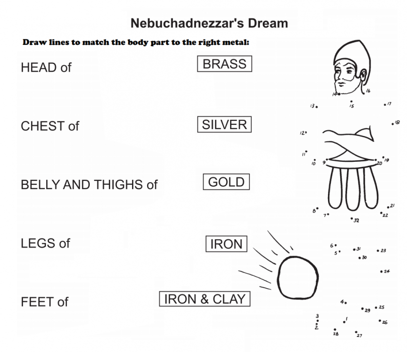31 “Your Majesty looked, and there before you stood a large statue—an enormous, dazzling statue, awesome in appearance. 32 The head of the statue was made of pure gold, its chest and arms of silver, its belly and thighs of bronze, 33 its legs of iron, its feet partly of iron and partly of baked clay. 34 While you were watching, a rock was cut out, but not by human hands. It struck the statue on its feet of iron and clay and smashed them. 35 Then the iron, the clay, the bronze, the silver and the gold were all broken to pieces and became like chaff on a threshing floor in the summer. The wind swept them away without leaving a trace. But the rock that struck the statue became a huge mountain and filled the whole earth.